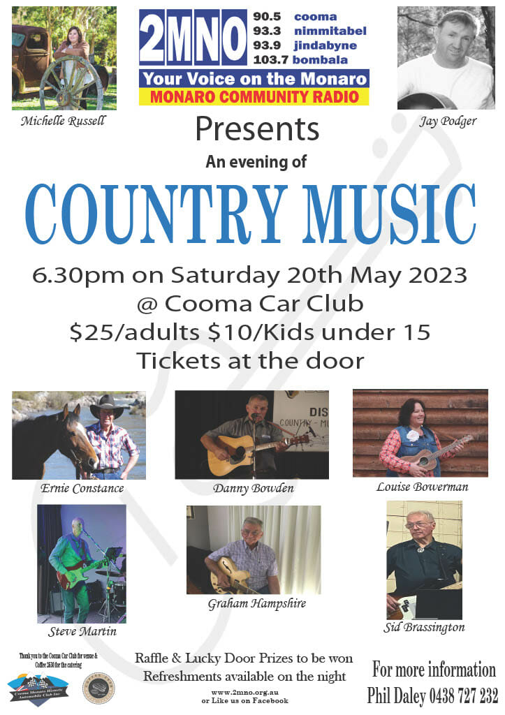2MNO Monaro Community Radio presents an evening of Country Music at the Cooma Car Club