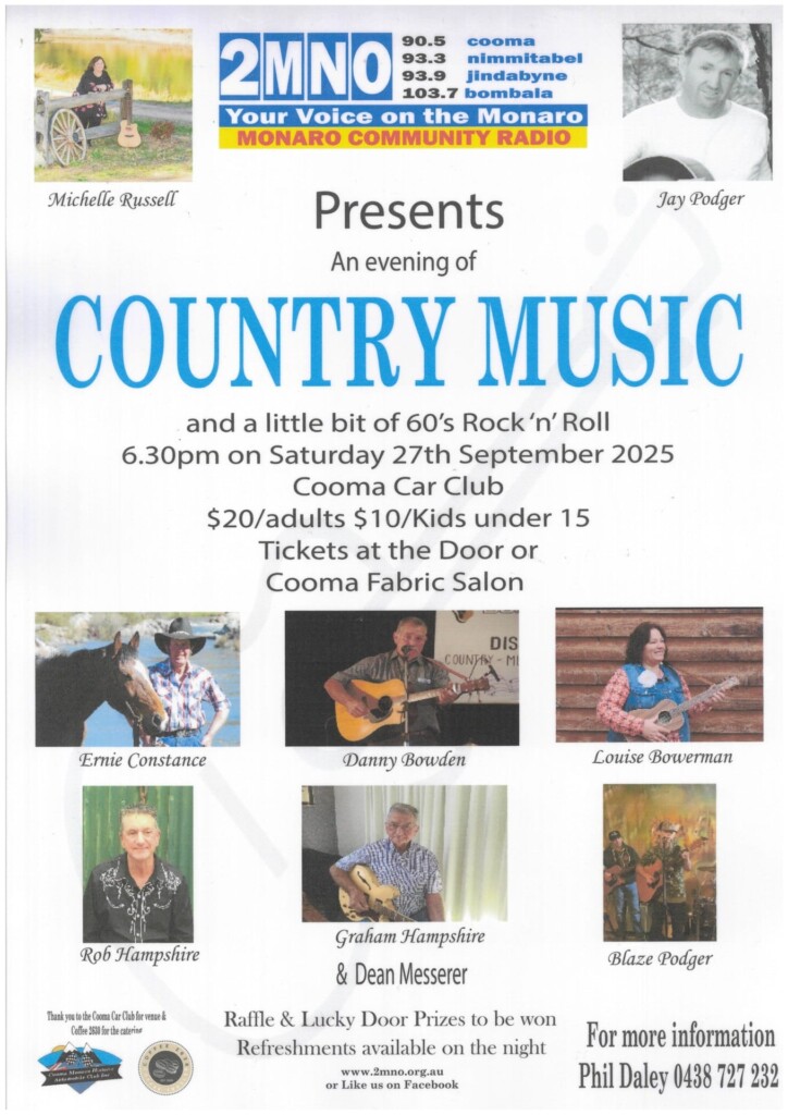 An Evening of Country Music & A Little Bit of 60s Rock ‘n Roll @Cooma Car Club