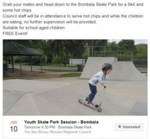 Cooma Visitors Centre - Bombala Skate Park hot chips January 2018