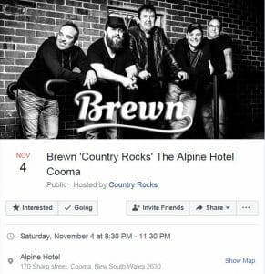 Cooma Visitors Centre - Brewn Country Rocks live at the Alpine Hotel November 2017