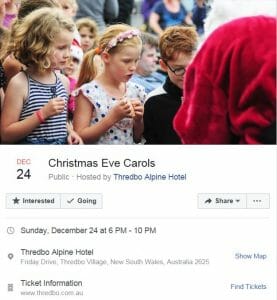 / Cooma Visitors Centre – Christmas Eve Carols Thredbo Alpine Hotel 2017