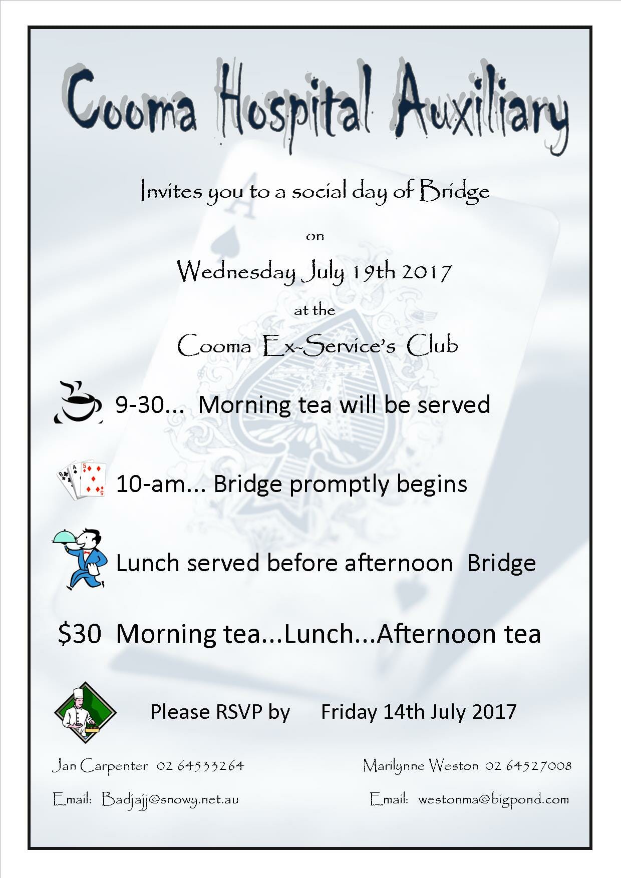 / Cooma Visitors Centre – Cooma Hospital Auxiliary social day of bridge 2017