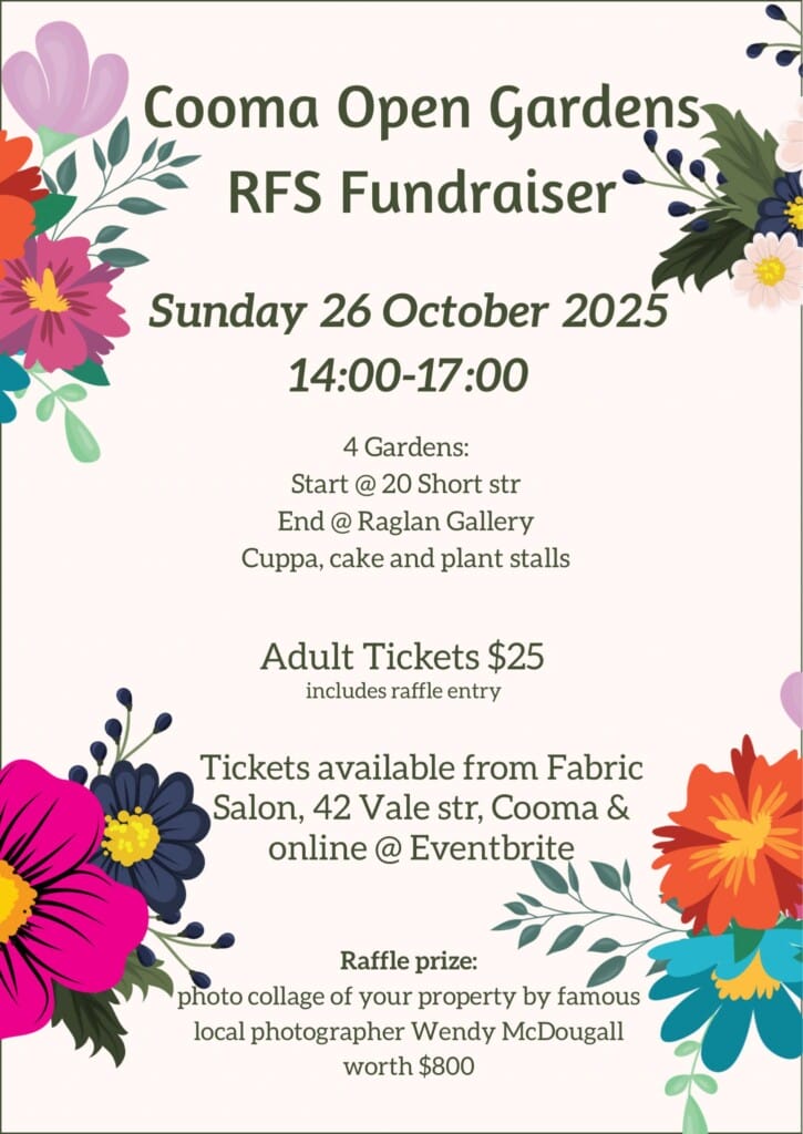 26/10/2025, 2:00 pm-5:00 pmCooma Open Gardens RFS Fundraiser @Cooma
