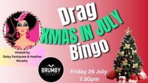 Drag Queen Bingo Christmas in July Brumby Bar and Grill