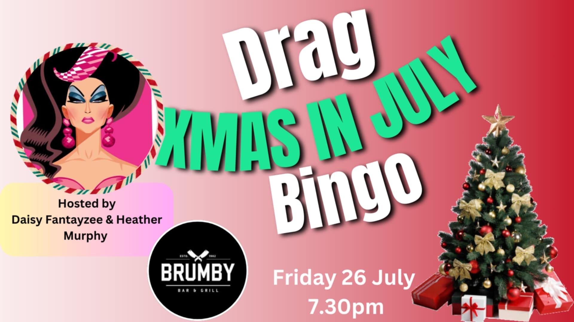 / Drag Queen Bingo Christmas in July Brumby Bar and Grill