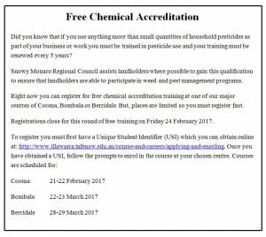 Free Chemical Accreditation - Cooma Feb 2017