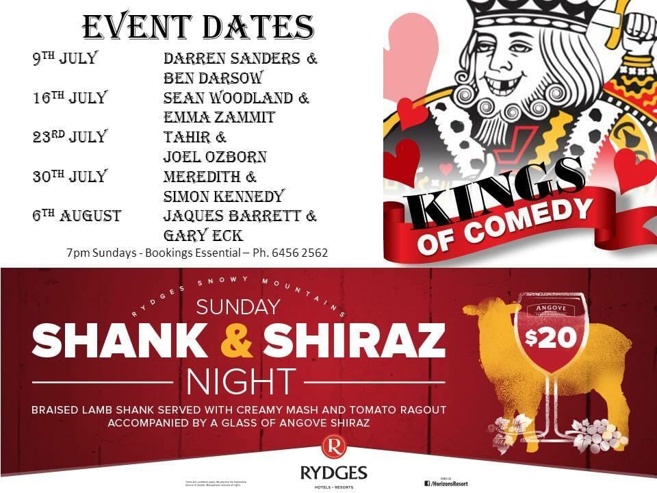 Hosted by Rydges Horizons Snowy Mountains, Kings of Comedy is on at 7pm every Sunday from 9th July – 10th September.
