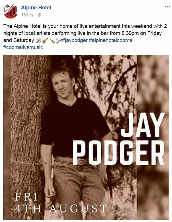 Cooma Visitors Centre - Jay Podger live at Alpine Hotel Fri 4th