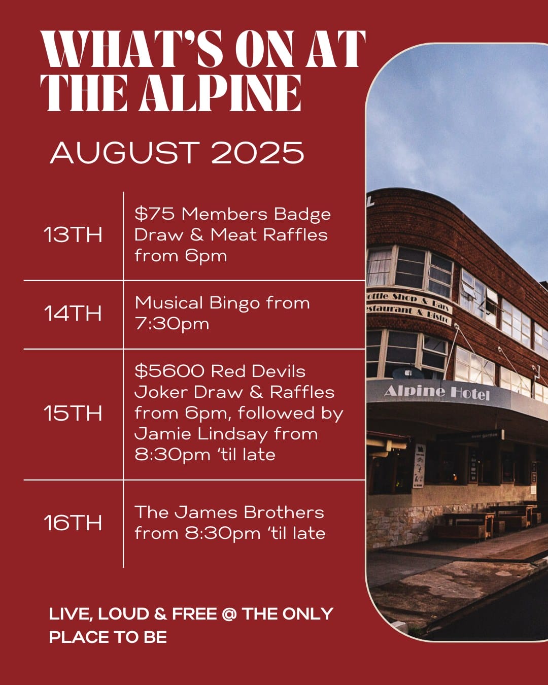 16/08/2025, 8:30 pm-11:30 pm170 Sharp Street, Cooma