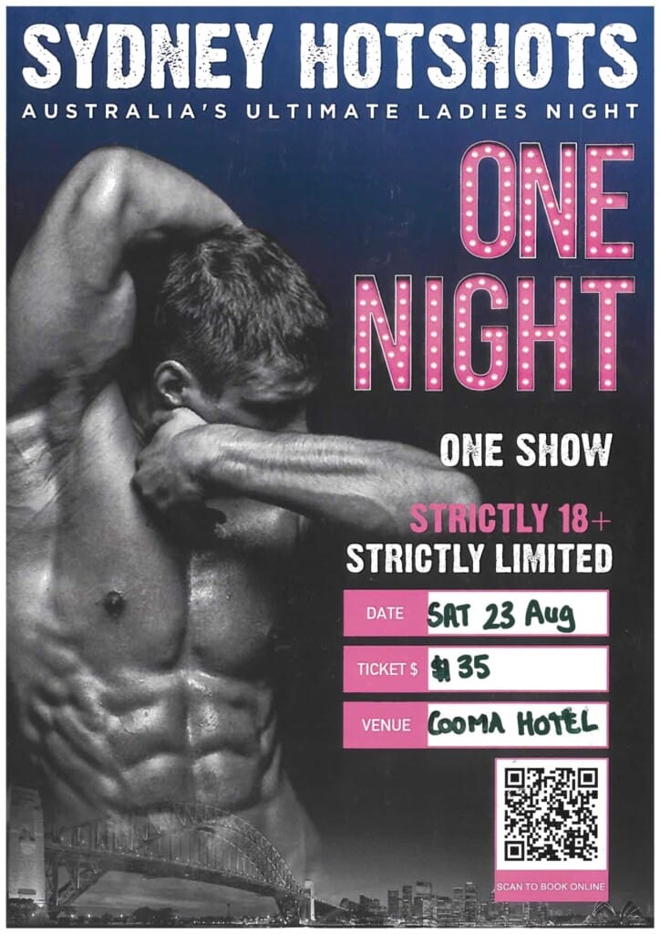 WHAT’S ON: ‘Ladies, it’s time to grab your friends, put on those party heels, and get ready for an electrifying night you won’t soon forget! Sydney Hotshots is back with an all-new, all-sizzling show designed to keep you on the edge of your seat all night long. Prepare yourself for a night packed with exhilarating performances, cheeky charm, and endless entertainment!’