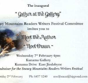 Gather at the Gallery Meet the Author Noel Braun Snowy Mountains Readers Writers Festival