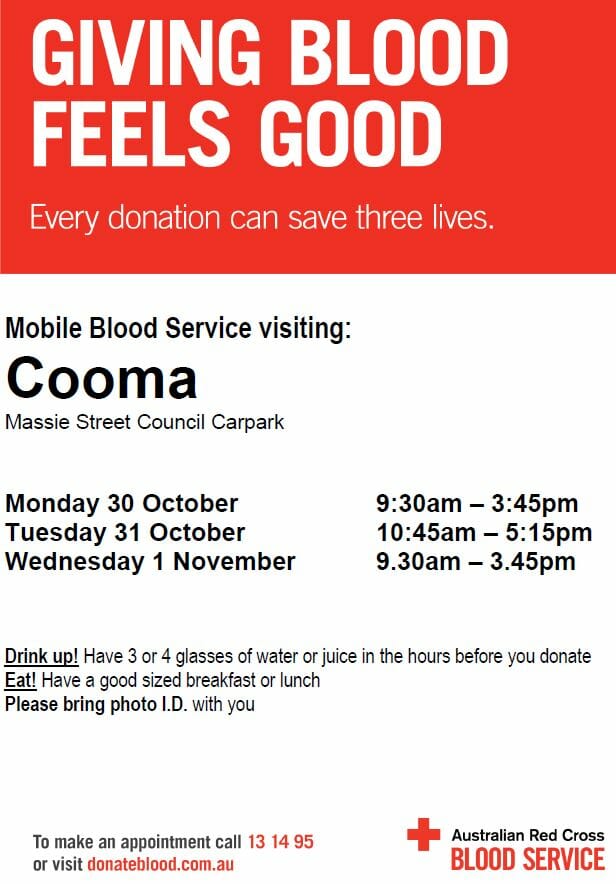 / Cooma Visitors Centre – Blood Bank Donate Massie Street Oct Nov 2017