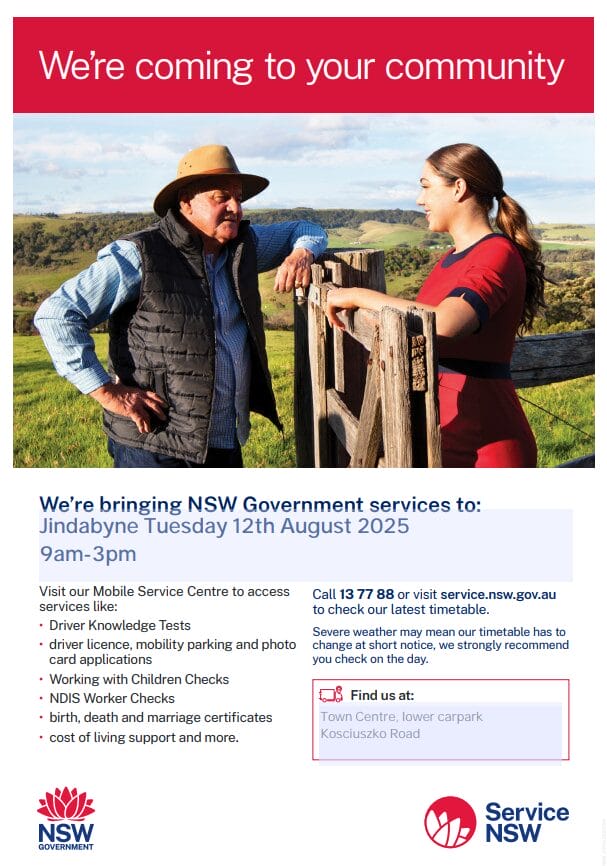 NSW Government services will be available in Jindabyne via the mobile service centre