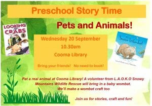 / Cooma Visitors Centre – Preschool Story Time PETS AND ANIMALS 20th Sept