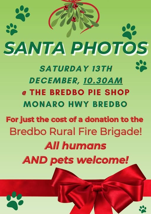 WHAT’S ON: Come along and secure a pic with Big Red (Santa). All humans and pets welcome.