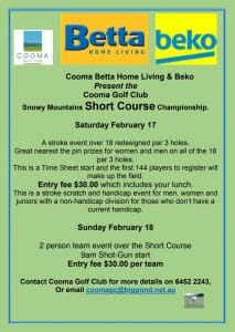 / Cooma Visitors Centre – Cooma Betta Home Living & Beko present the Cooma Golf Club Snowy Mountains Short Course Championship 2018