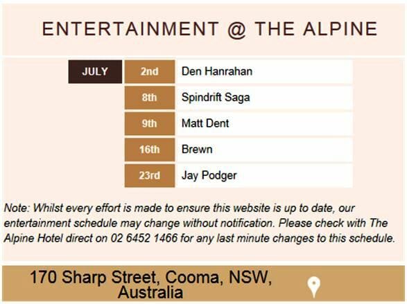 Alpine Hotel gig guide July 2016