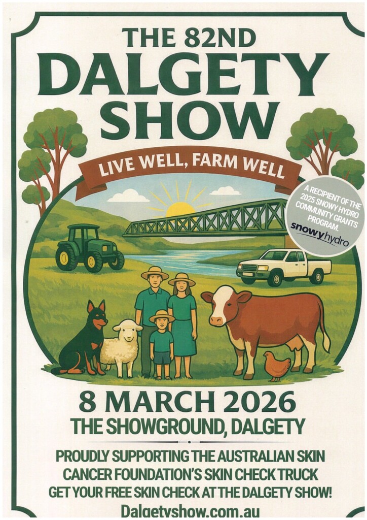 “Nestled on the banks of the Snowy River, the Dalgety Show celebrates everything that makes rural life rich, resilient, and full of heart. This year’s theme, “Live Well, Farm Well,” shines a light on the health and wellbeing of our people, our animals, and our land — reminding us that a thriving community starts with caring for ourselves and each other.