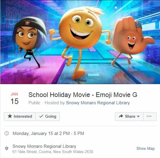 / Cooma Visitors Centre – School Holiday s Movie Emoji Library Jan 2018